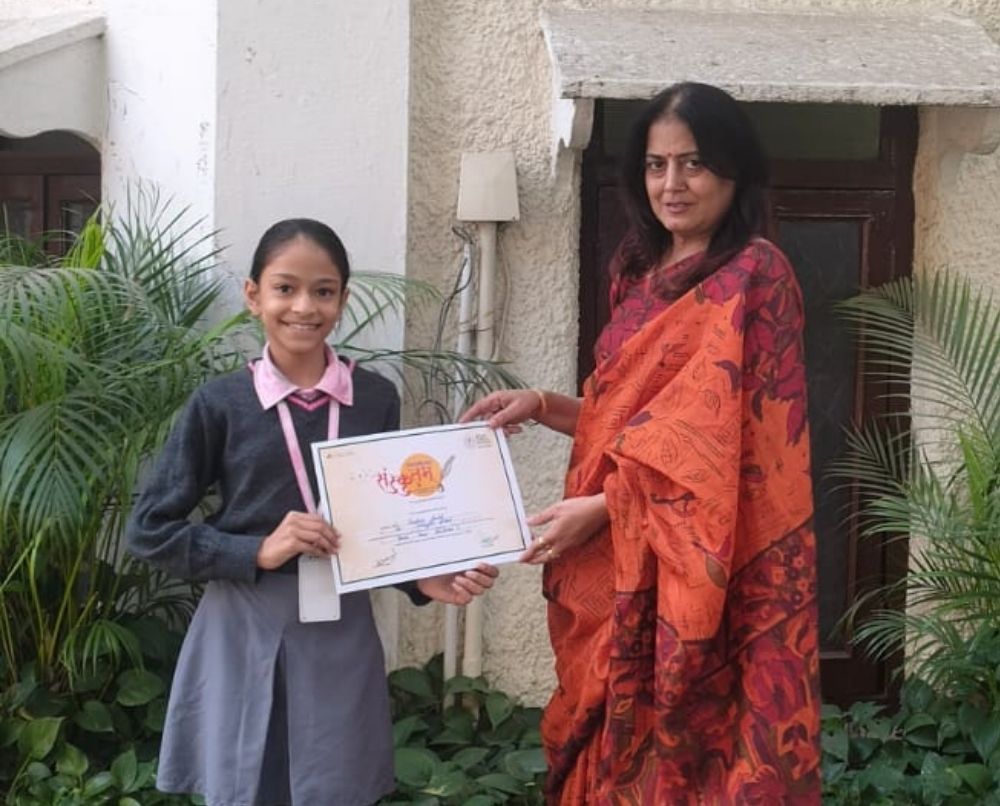With expressive gestures and clear diction, Drishna delivered her poem beautifully, conveying its emotions with sincerity. Her recitation reflected preparation, confidence, and a love for Hindi poetry.