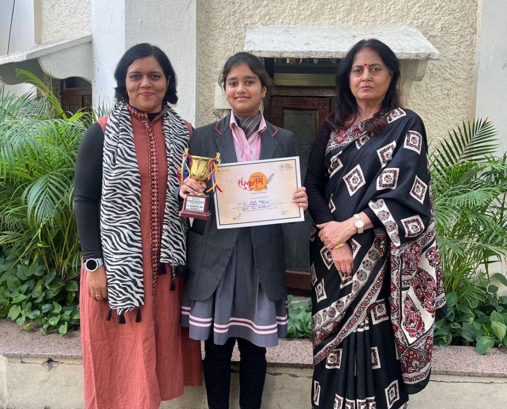 A proud moment for the school as Kanak Nayar of Grade 7 secured 2nd Prize in the Poem Recitation Competition – Category II (English) at the Shri Gurudev Gupta Memorial Interschool Cultural Fest 2025–26 – Vividham Sanskritam, organised by Delhi Public School, Rau, Indore.